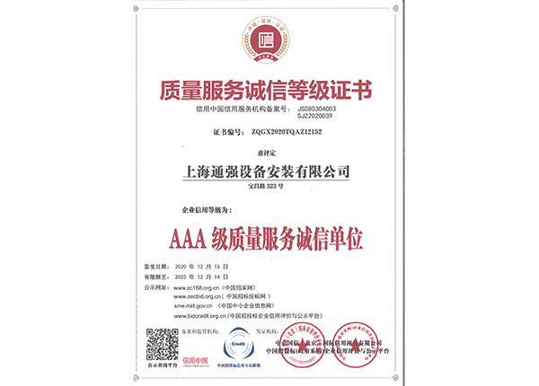 上海通強設備安裝有限公司注冊資金2000萬元,資產(chǎn)總量為100000萬元的專業(yè)設備安裝公司,公司專業(yè)從事工業(yè)與民用建筑的設備安裝、非標設備的制作、鋼結構制作安裝、中央空調(diào)系統(tǒng)的安裝,水電及管道的安裝。經(jīng)過20多年艱苦創(chuàng)業(yè)現(xiàn)已成為一個具有國家二級安裝資質,獲得上海市“重合同,守信用”的施工單位。